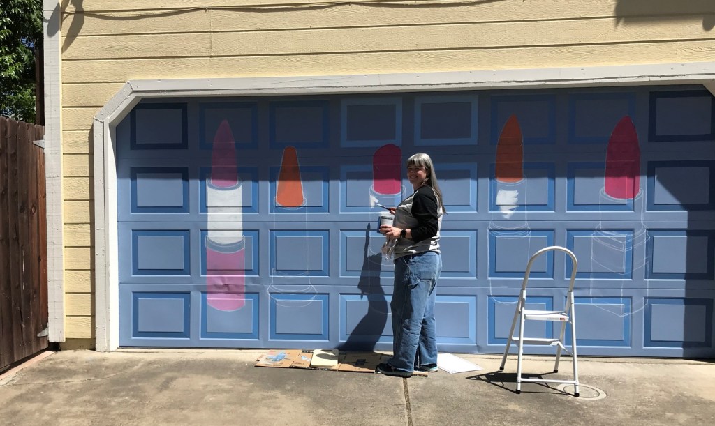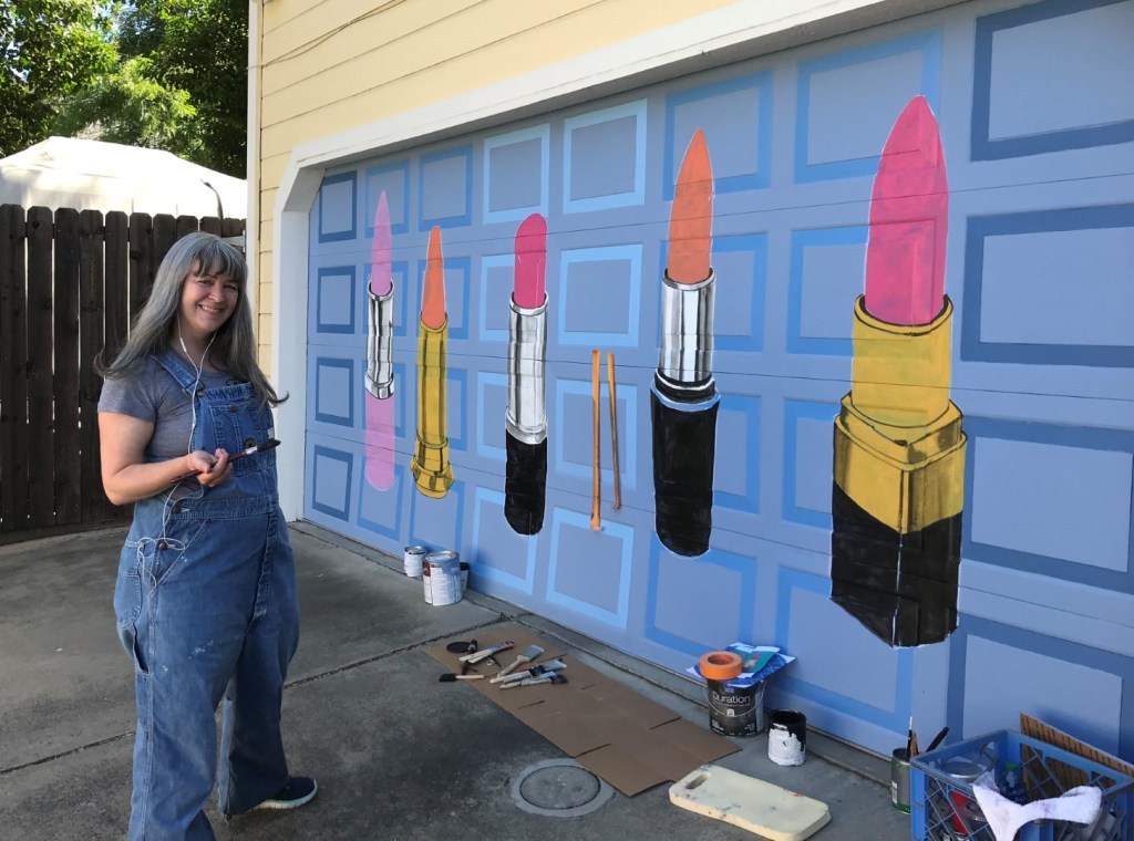 CALL ME MAYBE by Carrie Cottini is located in Sacramento Mural Alley at 3223 Folsom Boulevard in East Sacramento. This installation is located on a residential building in the alley.