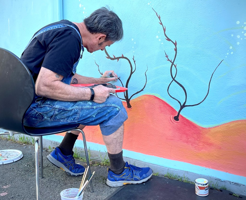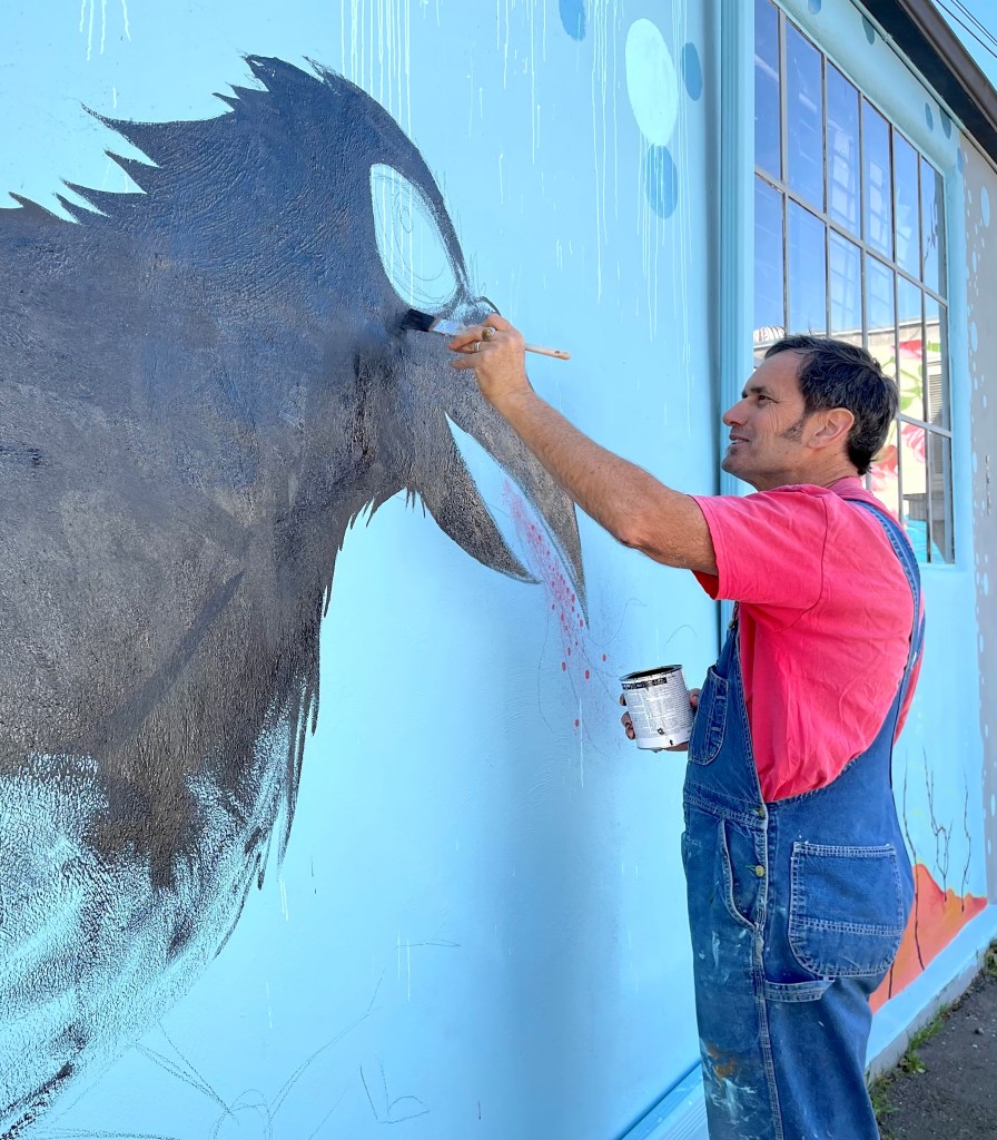 This mural is about navigating life in general. The crow could represent anyone of us. Even when our environment is favorable there are sometimes small obstacles that can inhibit our progress and our overall mental health. If we let these obstacles burden us, they will consume us and become a pain in the ass. We have to learn to persist and focus on the positive. When we look back most of these awkward situations become trivial. I know this may seem like an overused cliché but sometimes there are some truths to these adages. After the last couple of years, the world seems like a crazy damaged place, and it is! I am just challenging everyone (myself included) to look for those cool, amazing particles of brilliance and beauty and embrace them. It may be a difficult challenge, but probably one that is worthy of your consideration.